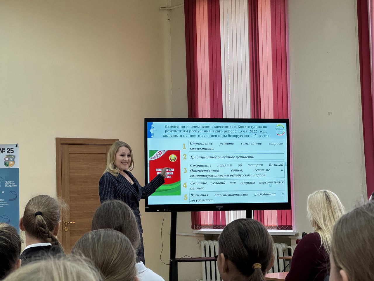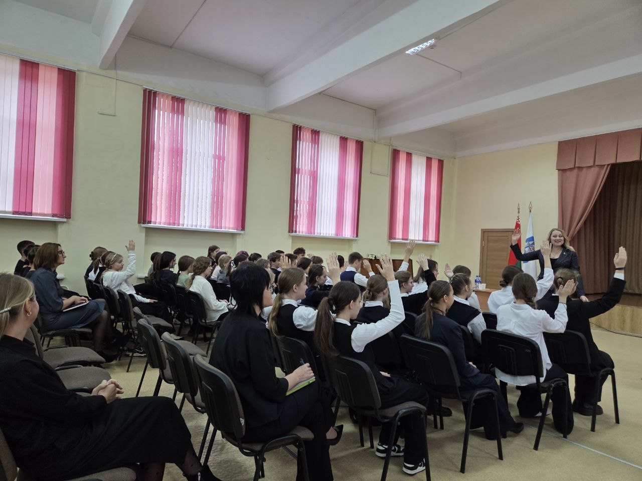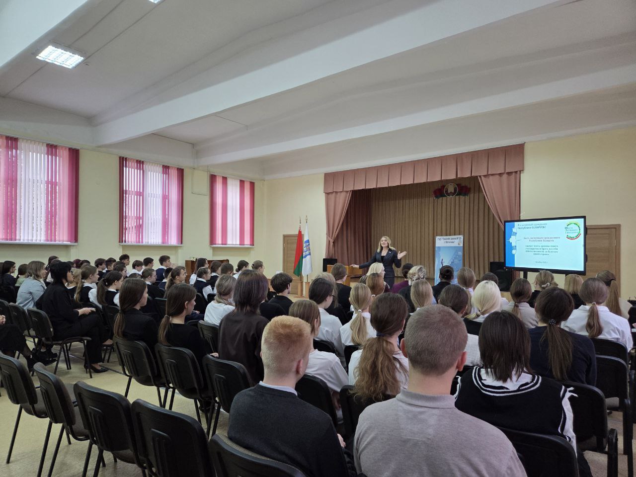 23.10.2025 состоялось тематическое мероприятие в рамках информационно-образовательного проекта «Школа Активного Гражданина» на тему «Быть достойным гражданином Республики Беларусь – значит чтить законы своего государства и брать на себя ответственность за будущее своей страны».