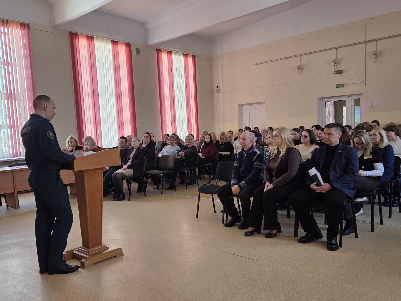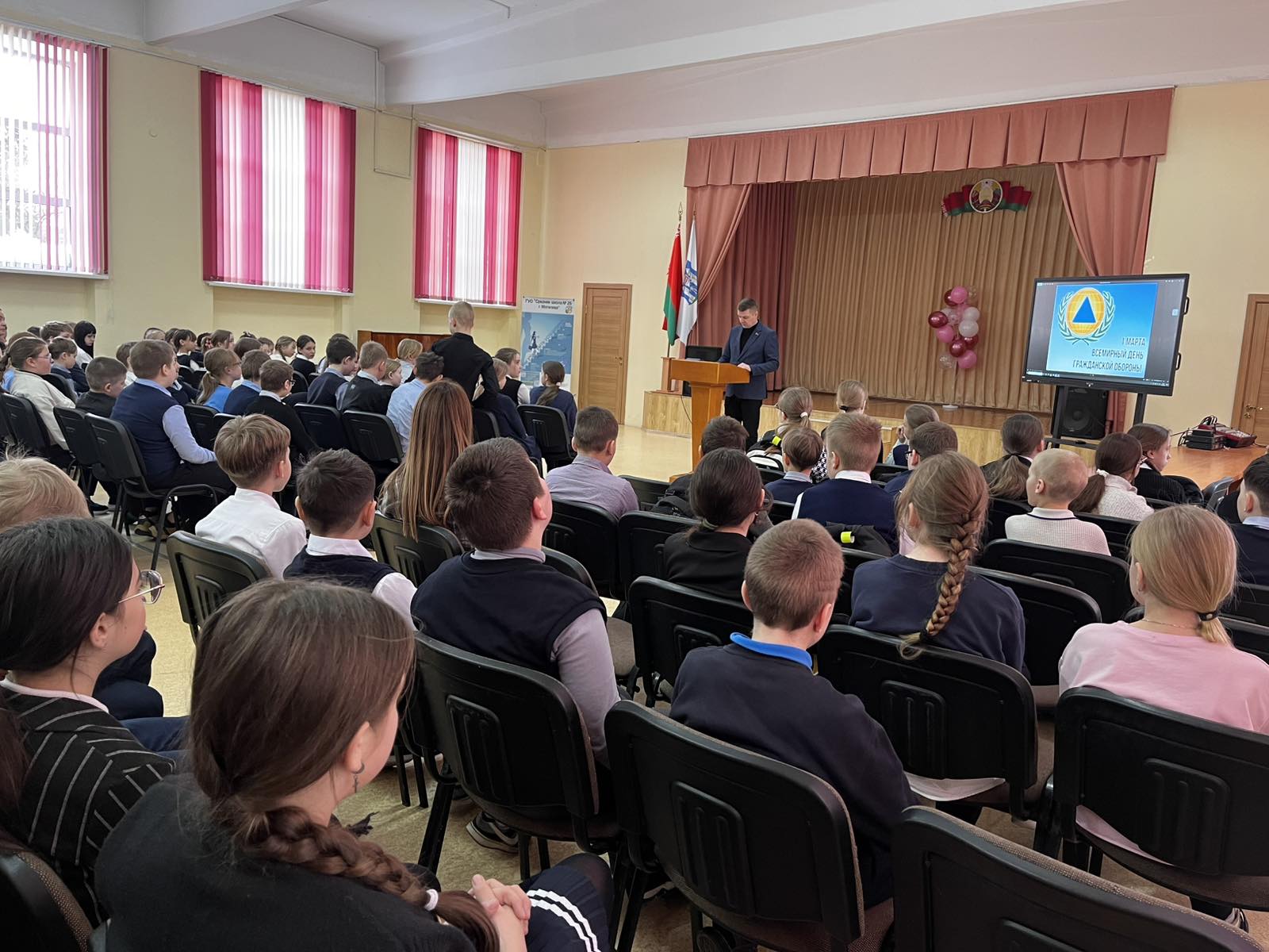 В преддверии Всемирного дня гражданской обороны прошла встреча сотрудника МЧС Гончарова И.В. с трудовым коллективом. Для учащихся руководителем по военно-патриотическому воспитанию Белисовым В.Г. была проведена информационная беседа на тему «Порядок действий в чрезвычайных ситуациях?».