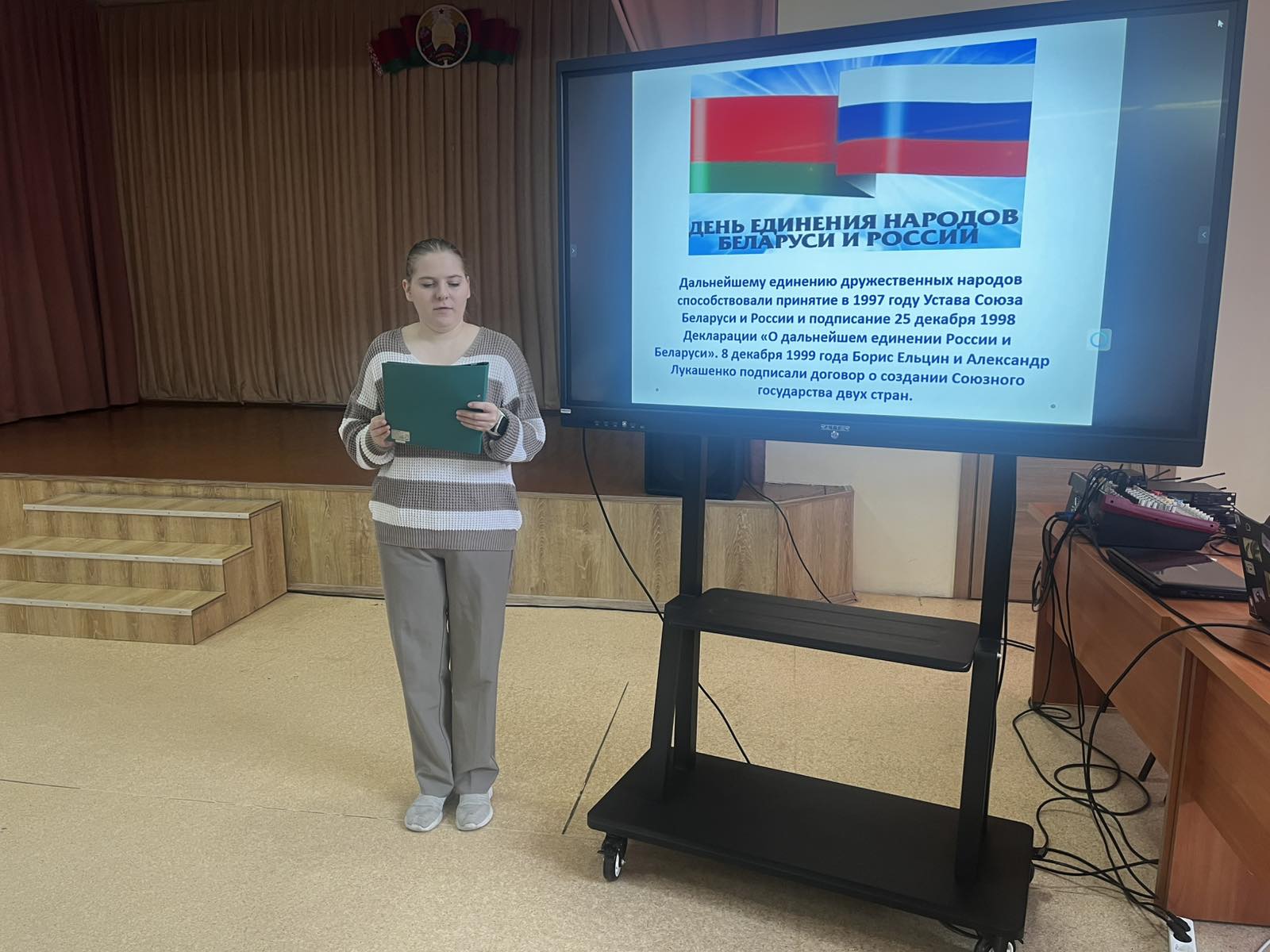 2 апреля 2026 года прошёл видеолекторий «Две сестры: Беларусь и Россия», посвящённый Дню единения народов Беларуси и России. Учащиеся познакомились с историей и современными достижениями Союзного государства, обсудили общие ценности и культурные связи. Мероприятие прошло в тёплой, дружеской атмосфере и помогло ребятам лучше понять значение единства двух братских народов.
