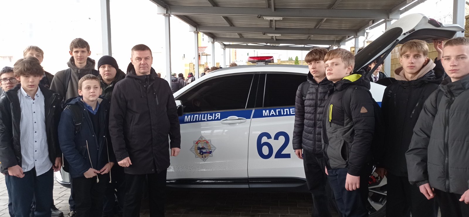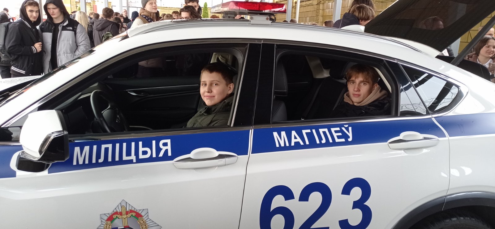 Учащиеся 9 классов нашей школы совместно с руководителем по военно-патриотическому воспитанию Белисовым В.Г. приняли участие в Дне открытых дверей, которое проходило в Ленинском РУВД г.Могилева. Ребятам показали спецтехнику состоящую на вооружении в милиции и рассказали о специфике службы в ОВД.