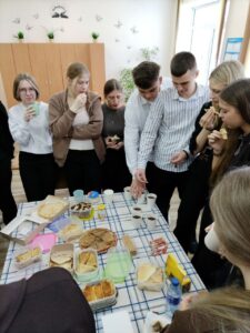 20 лютага адзначылі Дзень роднай мовы вучні 11 класаў, прыгадаўшы традыцыйнае свята Масленку. Было не толькі смачна, але і весела, карысна. Прыгадалі сімвалы беларускага арнаменту, стварылі ўзор з пажаданнямі. Пасля частаванне працягнулася па ўсёй школе, што стварыла добрую, вясёлую атмасферу.