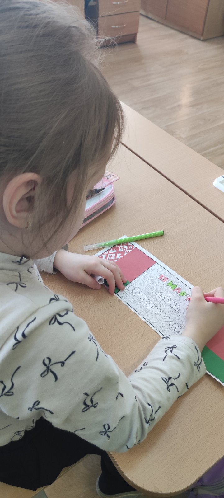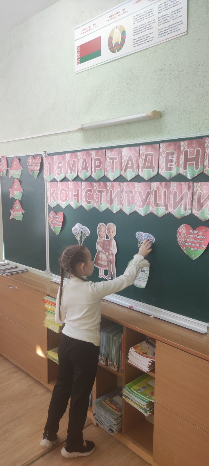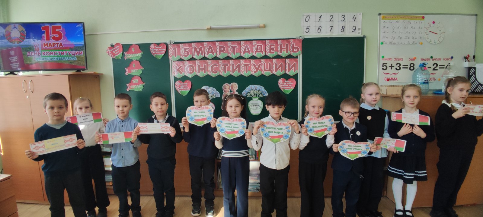 13 марта в 1″В” классе прошел единый урок, посвященный Дню Конституции Республики Беларусь. В ходе занятия первоклассники познакомились с главным законом страны, узнали о правах и обязанностях граждан. Ребята с интересом слушали рассказ о государственных символах — гербе, флаге и гимне, а также сами исполнили гимн стоя. Мы обсудили, как права детей, например право на учебу и отдых, защищены Конституцией. Для лучшего понимания темы использовались игровые моменты и яркие иллюстрации. Учащиеся сделали вывод, что знать и уважать законы своей страны нужно с детства.