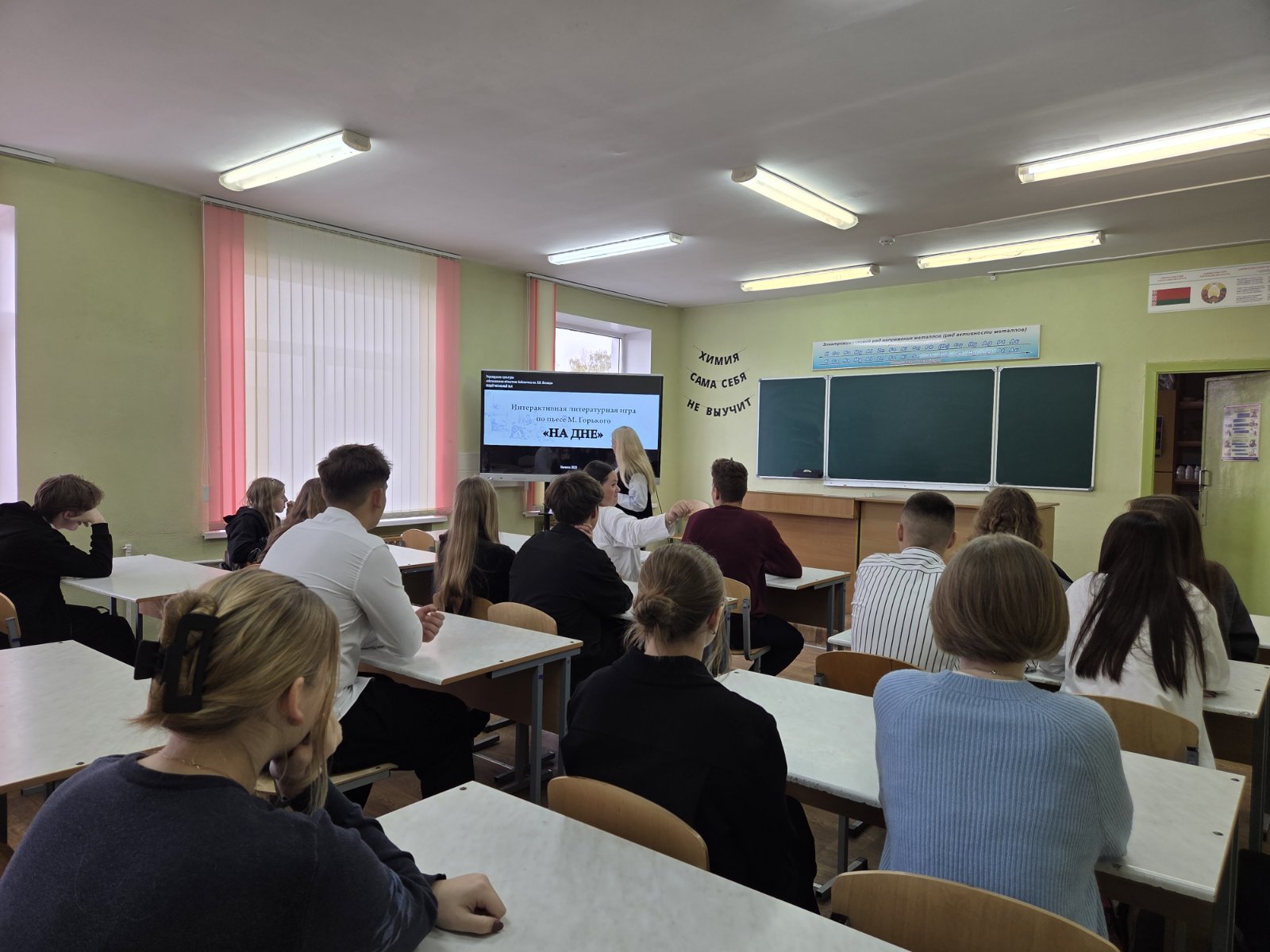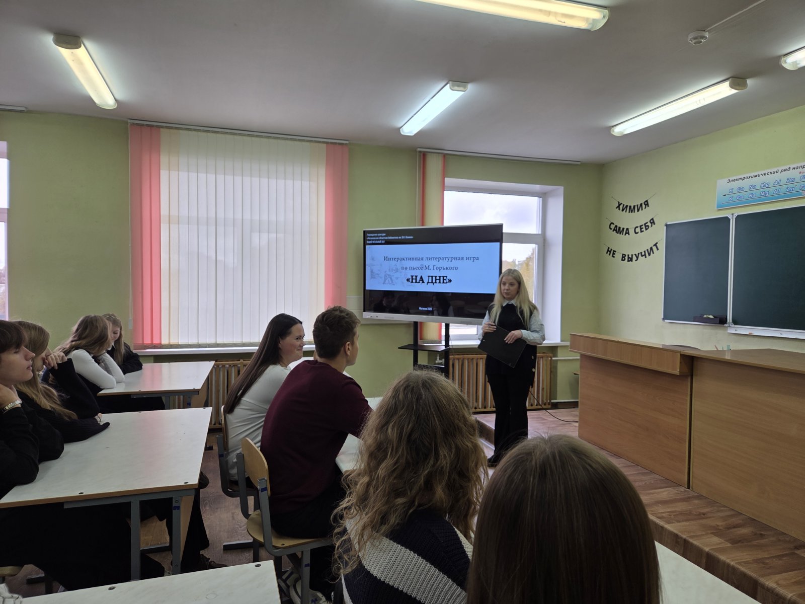 Для учащихся 11-х классов была проведена интерактивная литературная игра по пьесе “На дне”, автором которой является русский писатель XX века Максим Горький. Пьеса рассказывает о жизни отверженных обществом людей и поисках ими смысла жизни.