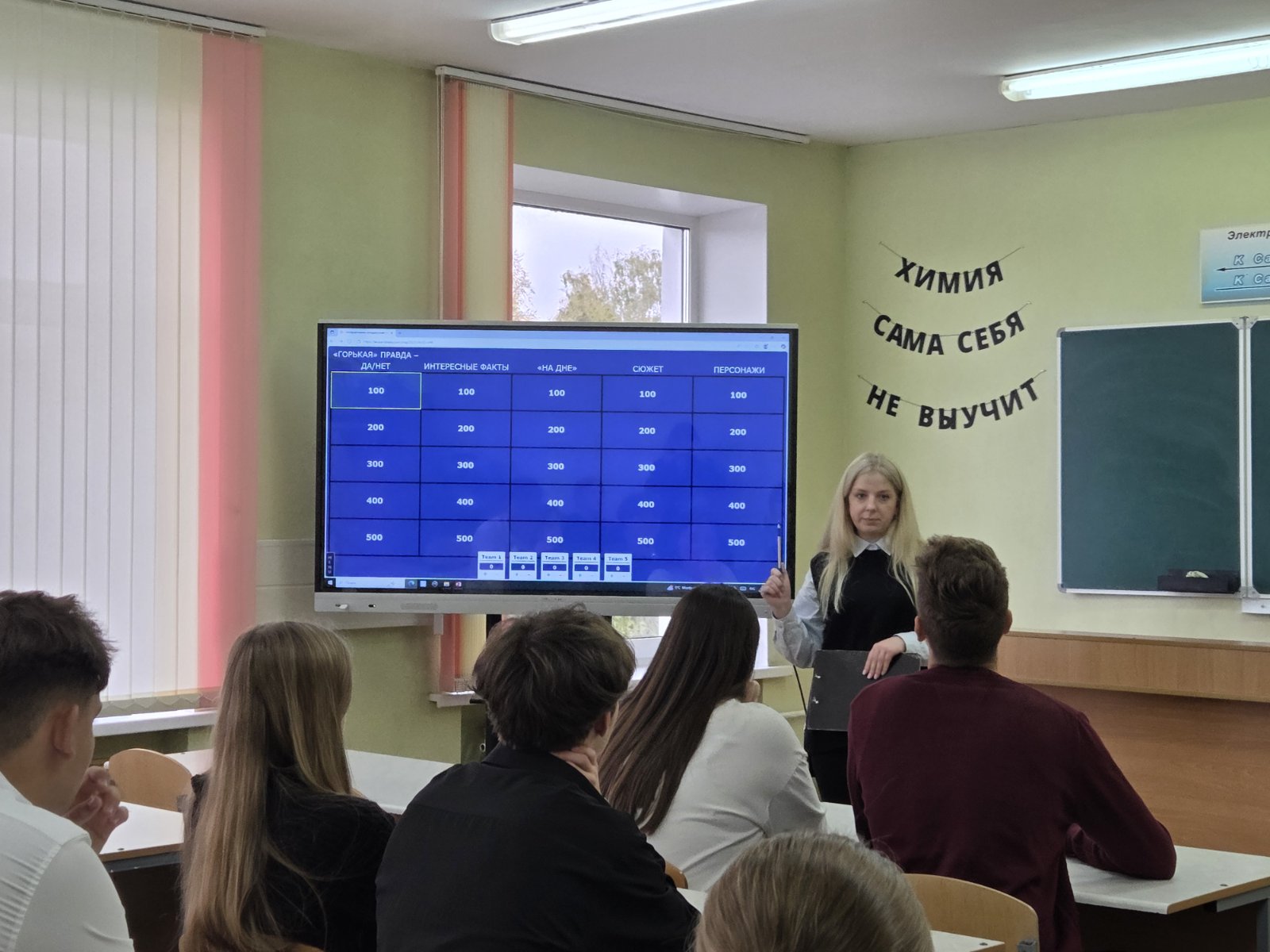 Ребята проверяли свои знания, выполняя задания следующих раундов: “Горькая” правда – Да/Нет”, “Интересные факты”, “На дне”, “Сюжет”, “Персонажи”. Старшеклассники активно обсуждали предложенные вопросы, вспоминали детали сюжета. Ребята активно боролись за возможность набрать большее количество баллов для своей команды. Все успешно прошли испытания, и по итогам игры победу одержала команда, отличавшаяся не только доскональным знанием текста, но и умением критически мыслить.
