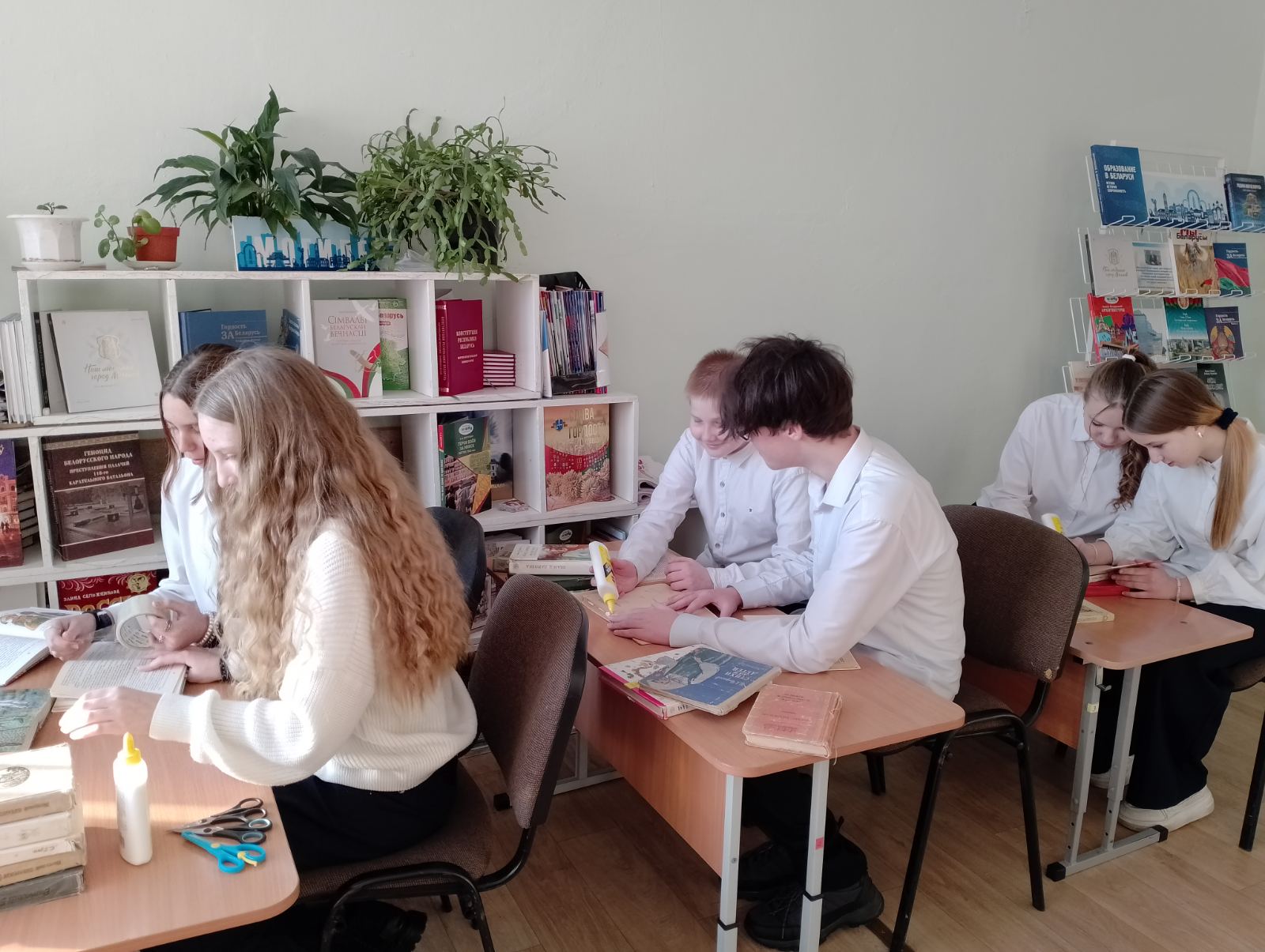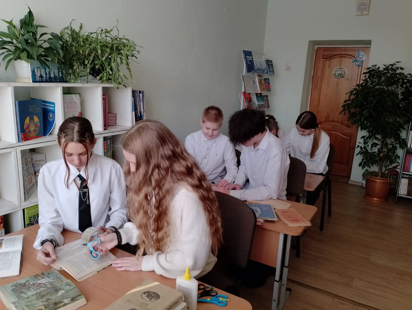 В этот день кипела особая работа — не учебная, а почти врачебная. Юные «доктора» из числа учащизся 7 классов добровольно встали на дежурство в «Книжкиной больнице».