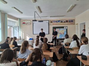 18 сентября 2025 года для учащихся 9-11 классов проведена профориентационная беседа «Куда пойти учиться». Выпускник школы 2023 года, студент 3 курса МОУВО «Белорусско-Российский университет», ШЛЫКОВ Никита Максимович рассказал учащимся о жизни электротехнического факультета, преимуществах поступления в учреждение образования, возможных перспективах будущих профессий. Встреча прошла в диалоговом формате, ребята задавали вопросы про нюансы поступления и получали на них развернутые ответы.