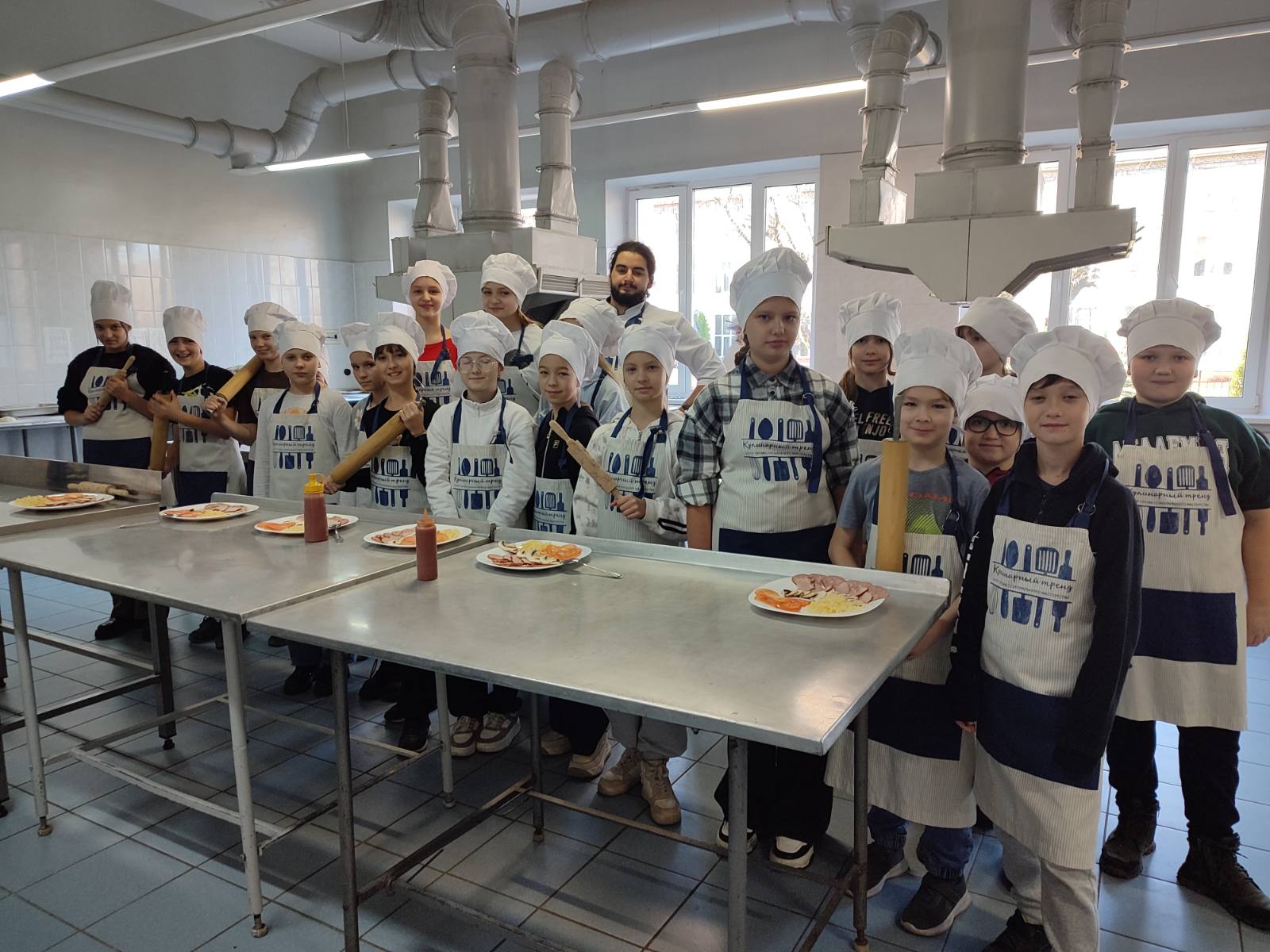 5 ноября ребята из 5 «А» класса посетили БГУТ. Для наших учащихся провели небольшую экскурсию по университету, показали просторные аудитории, учебную лабораторию. Каждый участник получил свой рабочий стол и настоящий шеф-атрибут – поварской колпак и фартук. На мастер – классе студенты рассказали и показали, как готовится идеальное тесто для пиццы. Ребята делали «свою» индивидуальную пиццу. Мероприятие закончилось совместным чаепитием и дегустацией кулинарных шедевров.
