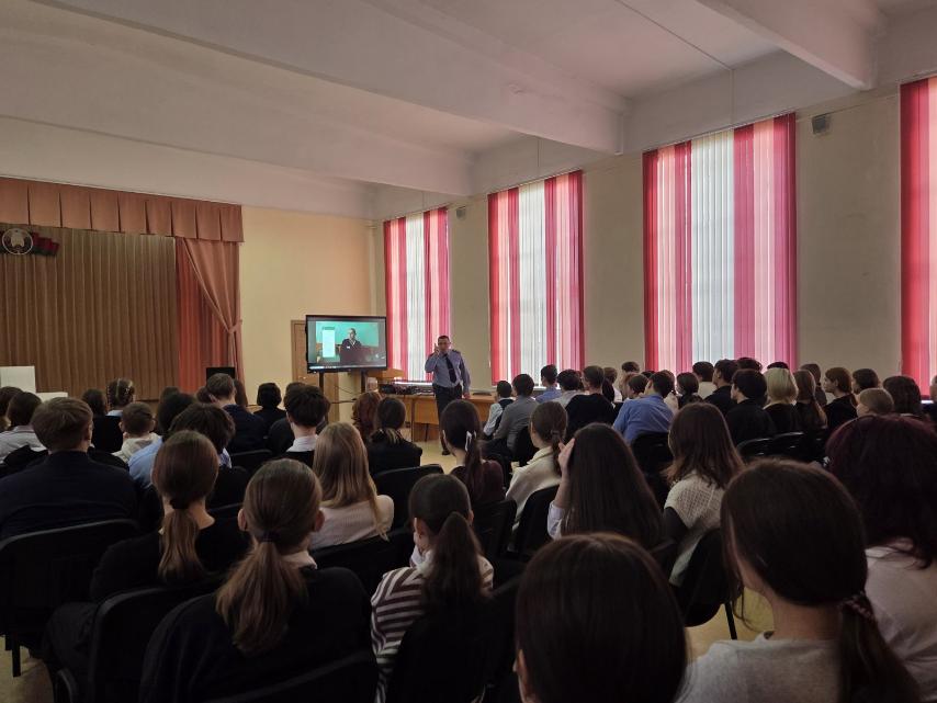 В рамках областной профилактической акции «Вместе» 04.02.2026 прошла встреча учащихся 9-11 классов с участковым инспектором ИДН Ленинского РУВД г. Могилева Усольцевым Александром Александровичем «Правила безопасного поведения в сети интернет. Особенности ответственности несовершеннолетних за совершение противоправных поступков. Ответственность за преступления в сфере незаконного оборота наркотиков, половой неприкосновенности несовершеннолетних.
