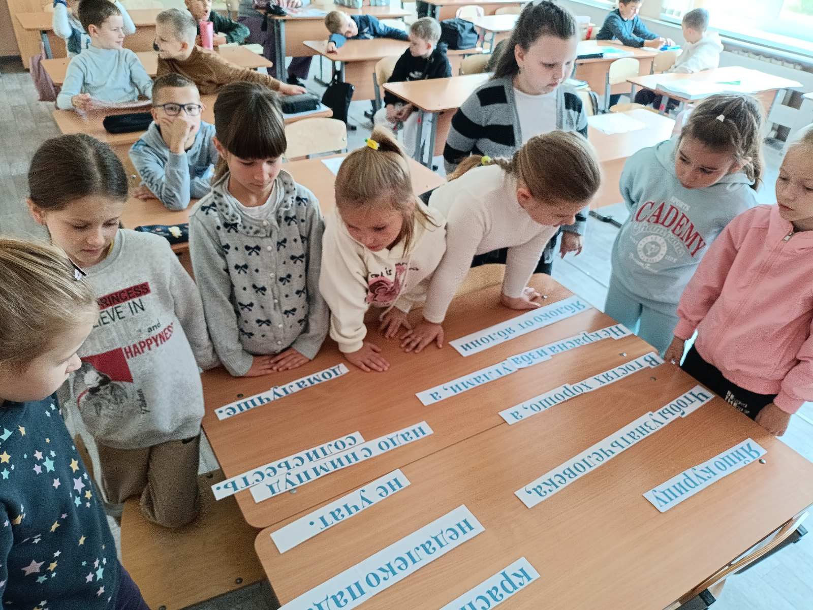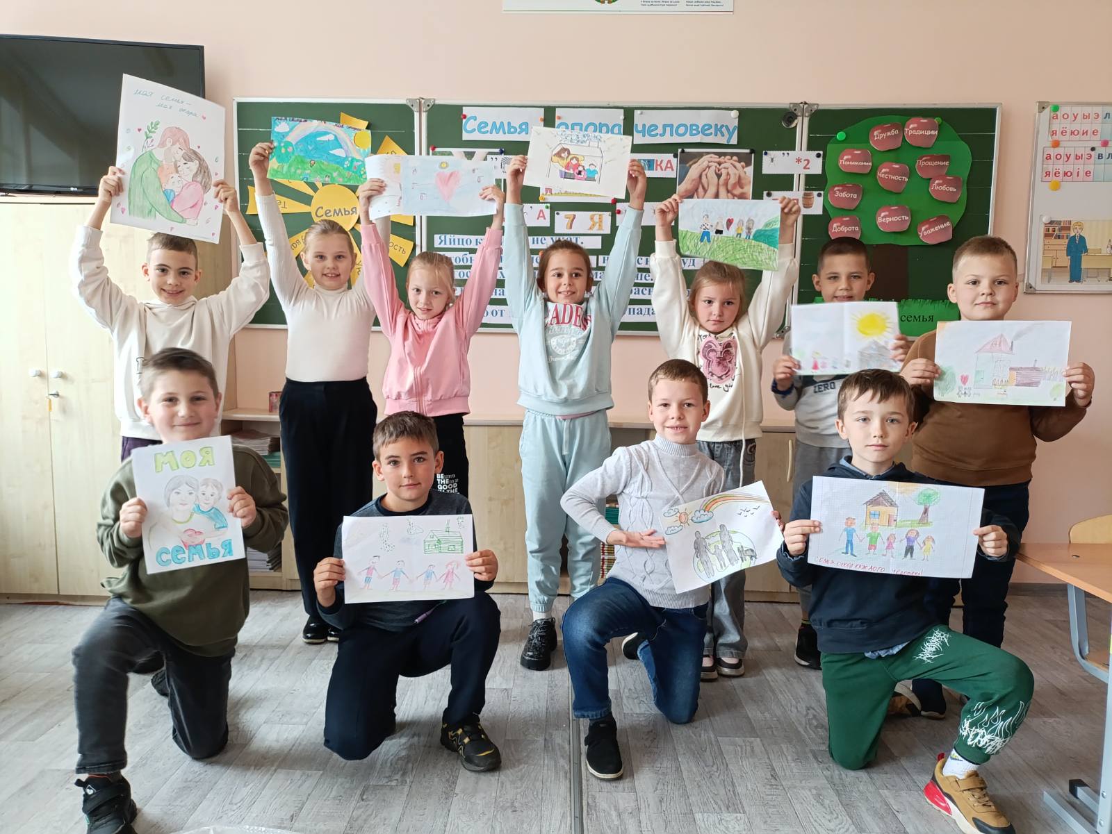 27 сентября в рамках шестого школьного дня, учащиеся 2 “В”,2 “Г”,2 “Д” классов, участвовали в мероприятии “Семья – опора человеку”. Целью мероприятия было показать, как важна семья в жизни каждого человека. В ходе мероприятия ребята принимали активное участие в викторине, разгадывали ребусы и загадки, а так же раскрыли для себя значение понятий “Семья”, “Счастливая семья”, “Семейные ценности”. В конце мероприятия, каждый изобразил свою счастливую семью на рисунке.