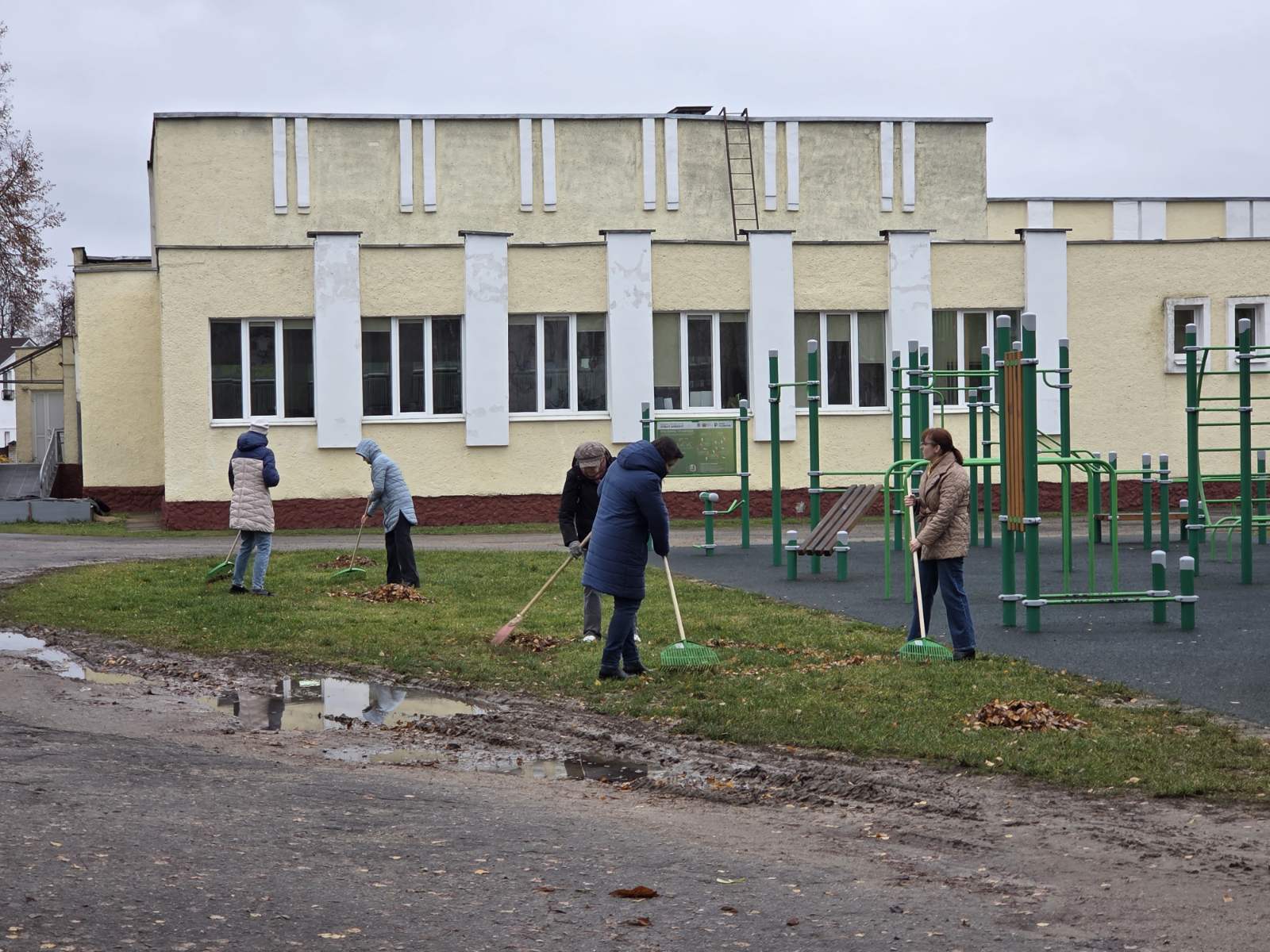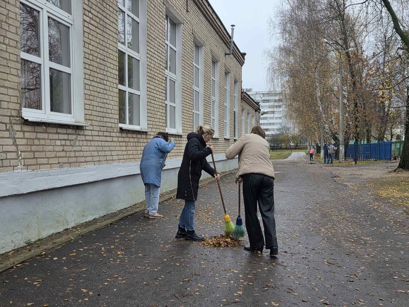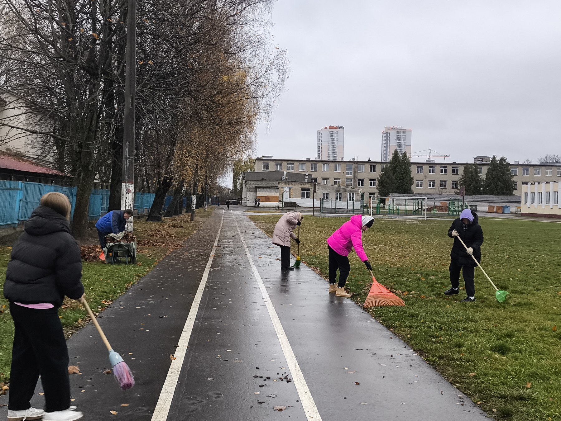Сегодня 1 ноября педагоги школы дружно вышли на субботник и вместе: провели уборку опавшей листвы, очистили территорию от мусора, привели в порядок спортивную площадку, стадион и газоны.