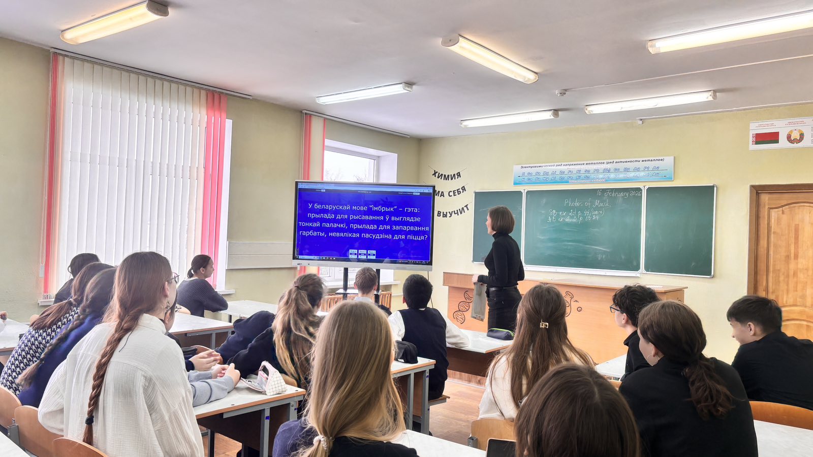Супрацоўнікі агульнай чытальнай залы для навучэнцаў 8-ых і 7-га класа правялі інтэрактыўную камандную гульню “Знаўцы роднай мовы”. Вучні, выяўляючы кемлівасць і знаходлівасць выконвалі заданні: вызначалі словы па яго лексічным значэнні; тлумачылі значэнне слоў і фразеалагізмаў; адгадвалі загадкі; перакладалі словазлучэнні з рускай на беларускую мову.