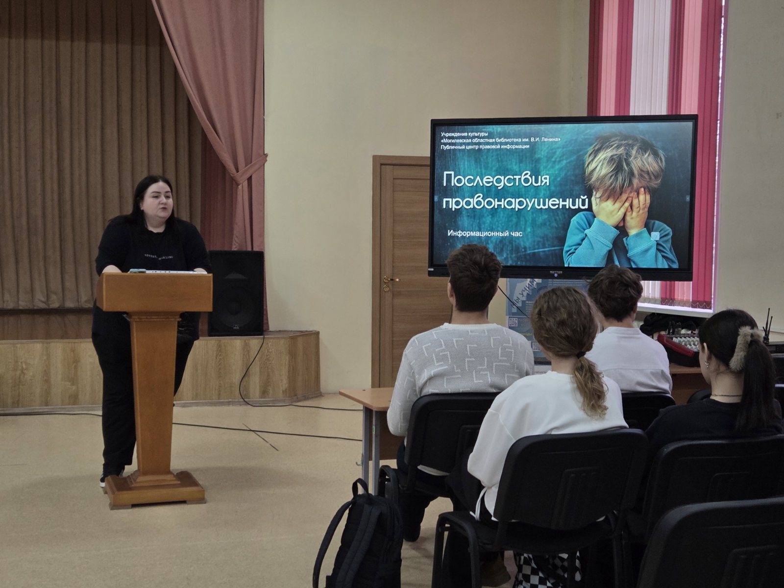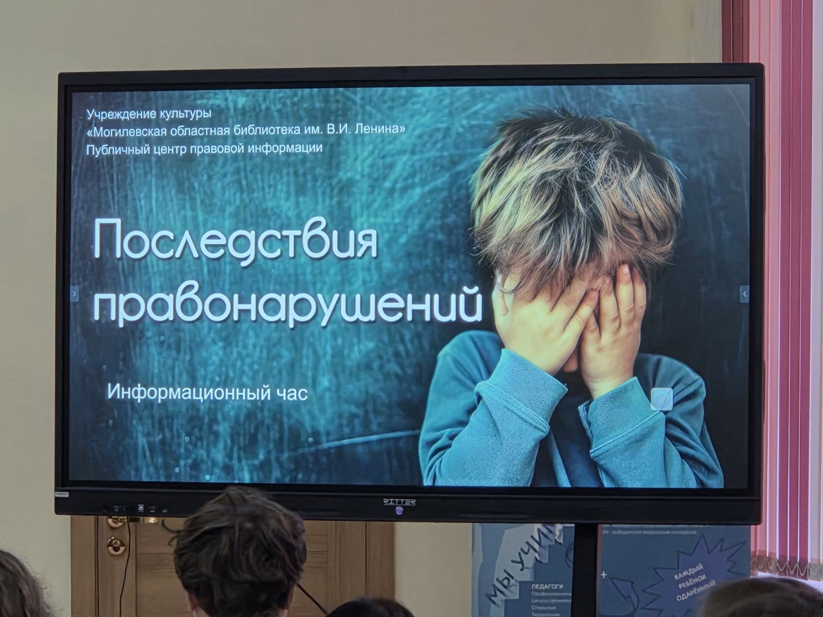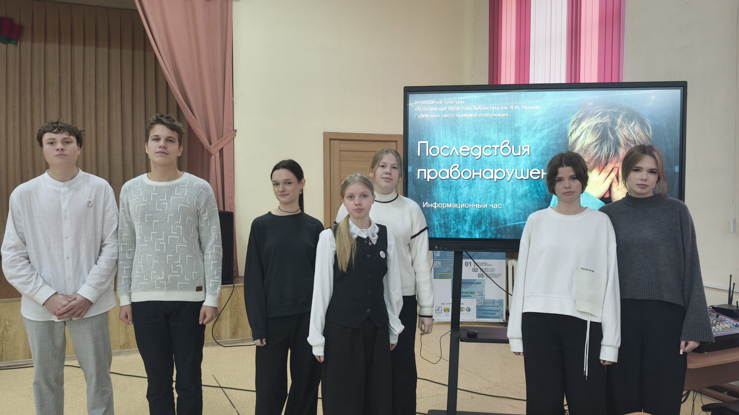 18 ноября школьная библиотека совместно с областной библиотекой им. В.И. Ленина провели час информации “Последствия правонарушений”.