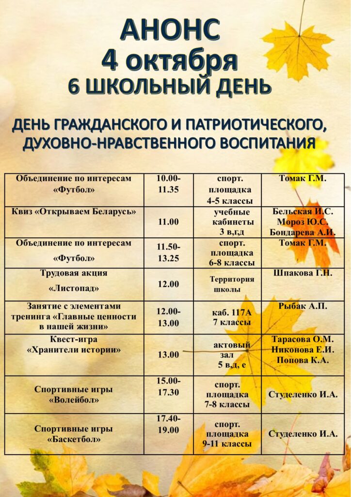 20 сентября в 4 “А” и 4 “Б” классах в рамках шестого школьного дня прошло воспитательное мероприятие “Без труда мы никуда”. 2025 год в Беларуси объявлен Годом благоустройства. Каждый гражданин […]